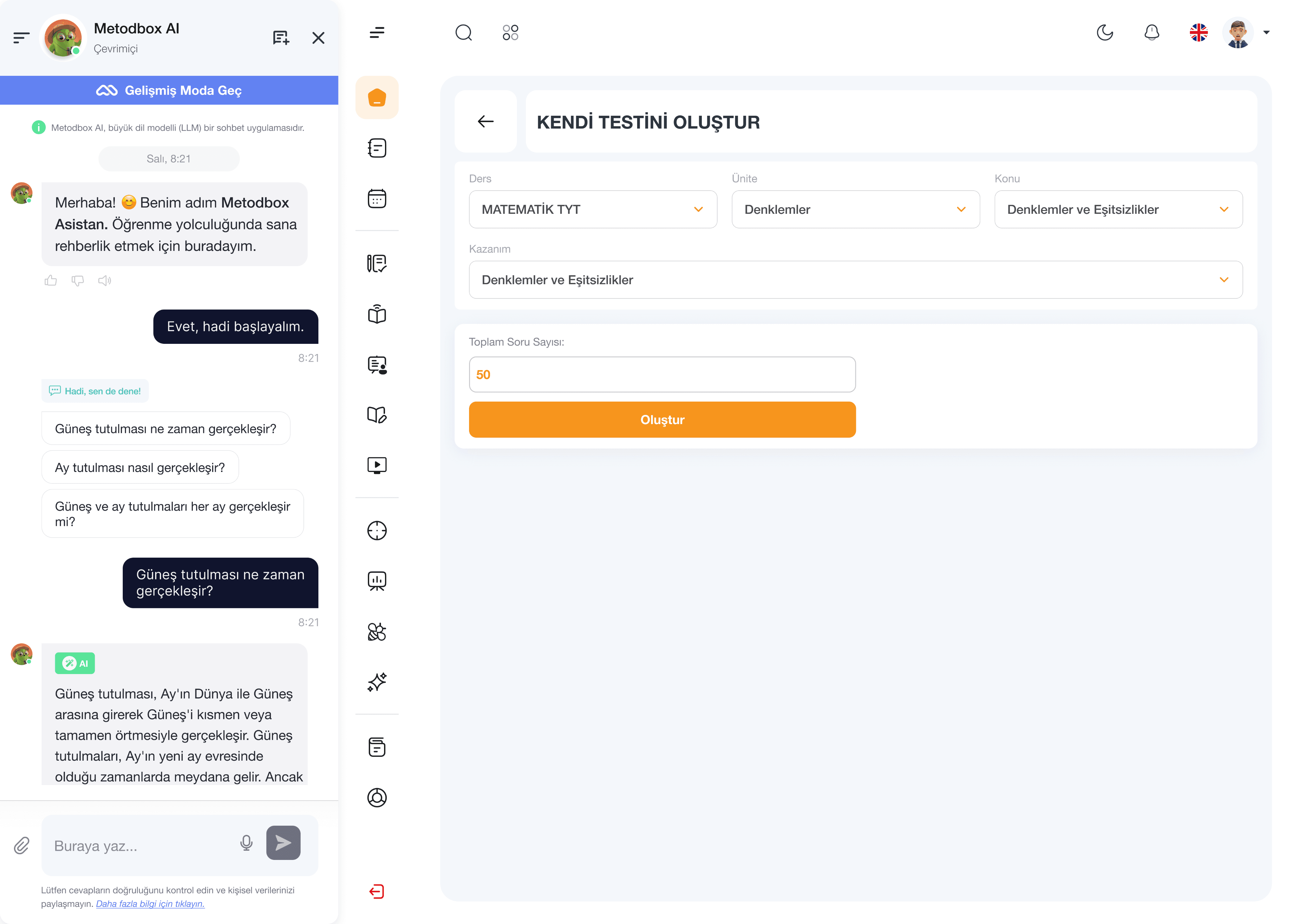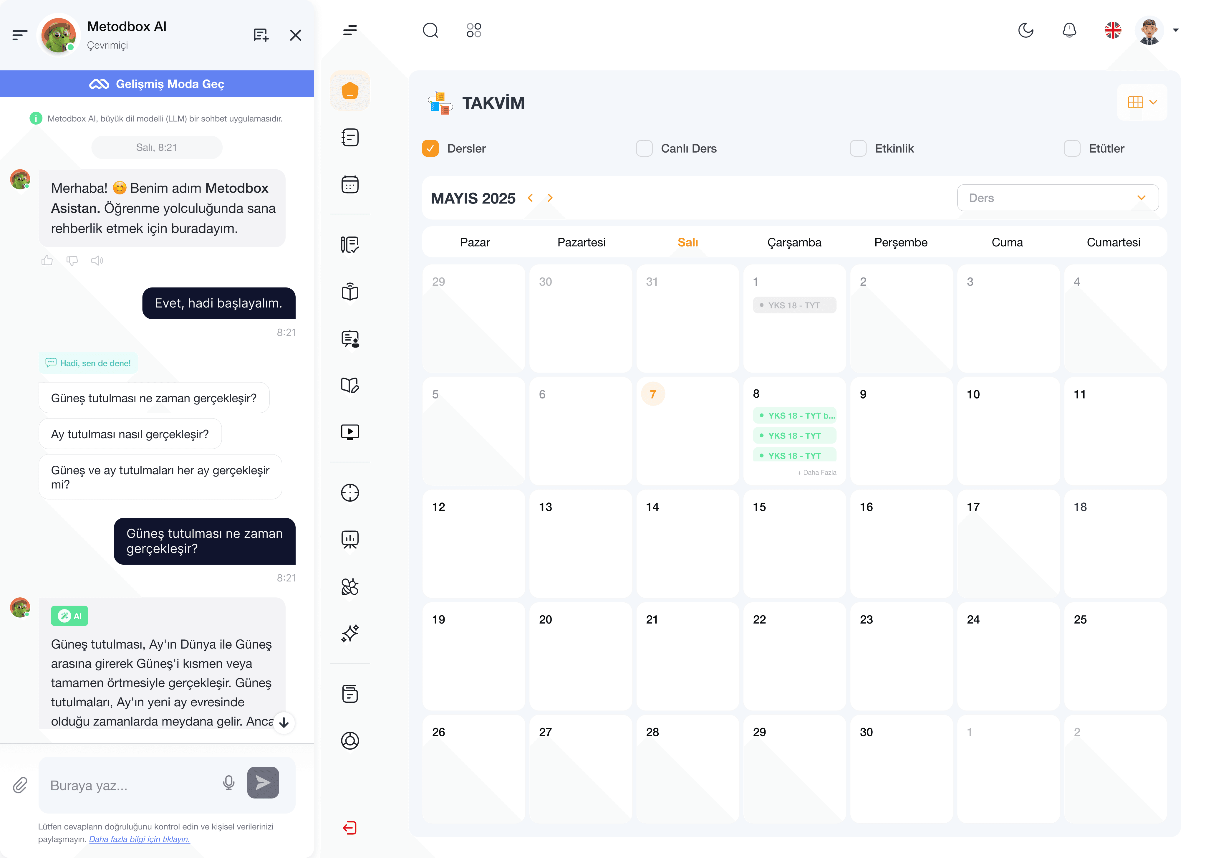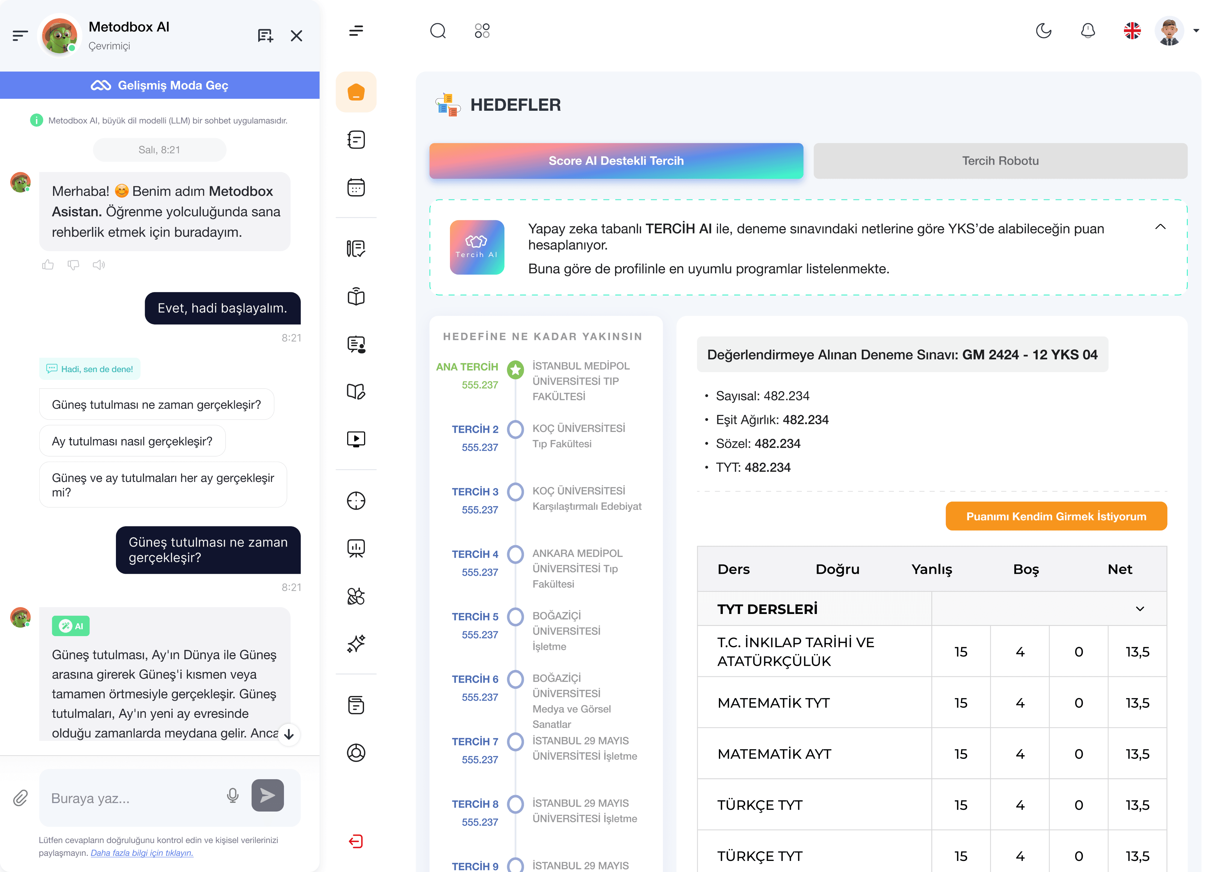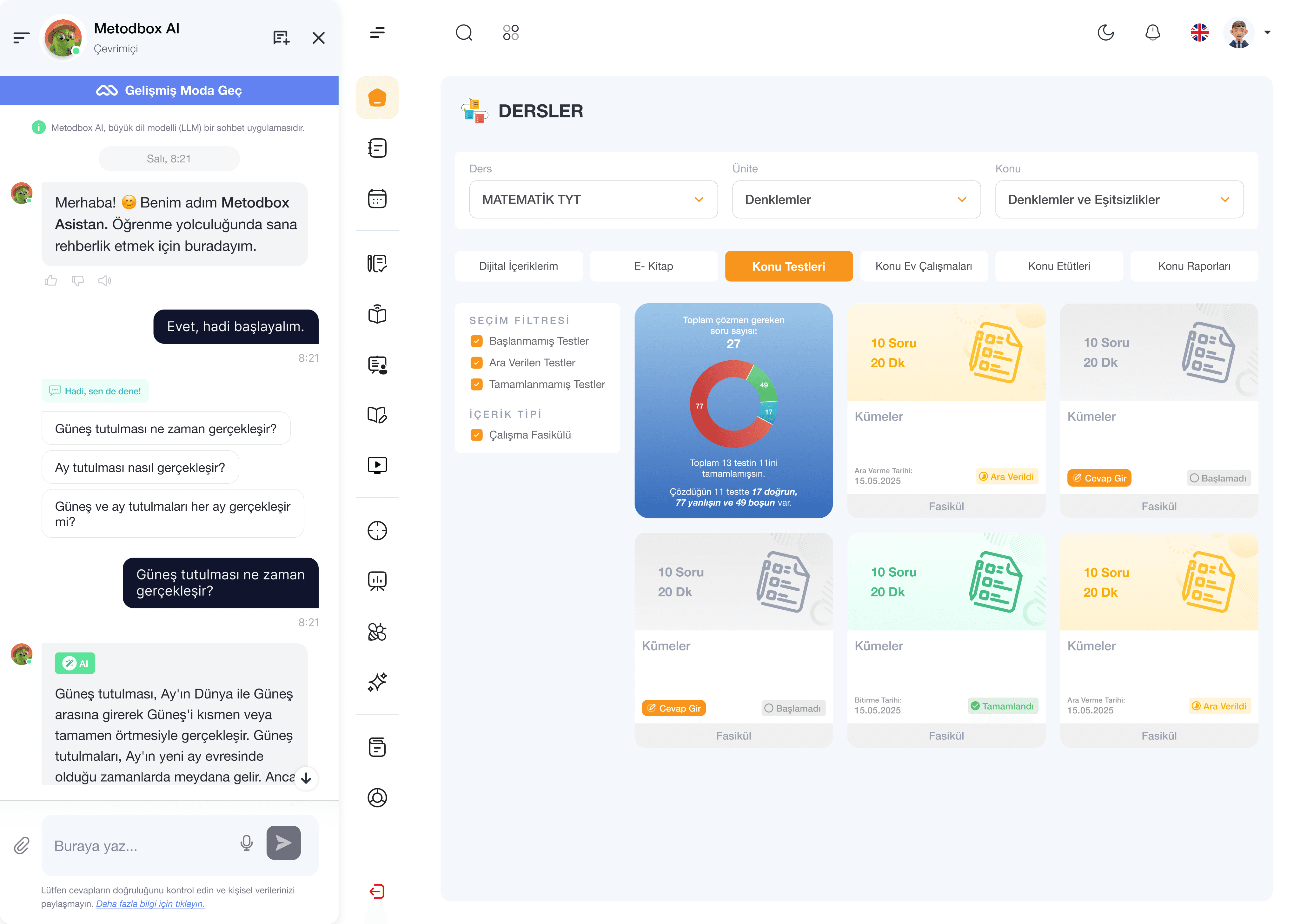 Metodbox is a digital education platform designed for students, teachers, school administrators, and parents, covering the K‑12 level through university preparation. It offers AI-powered performance tracking, personalized content, assignment and exam management features. Accessible via both web and mobile applications, it simplifies the learning process with a user-friendly interface and provides advanced analytics tools for all stakeholders.
